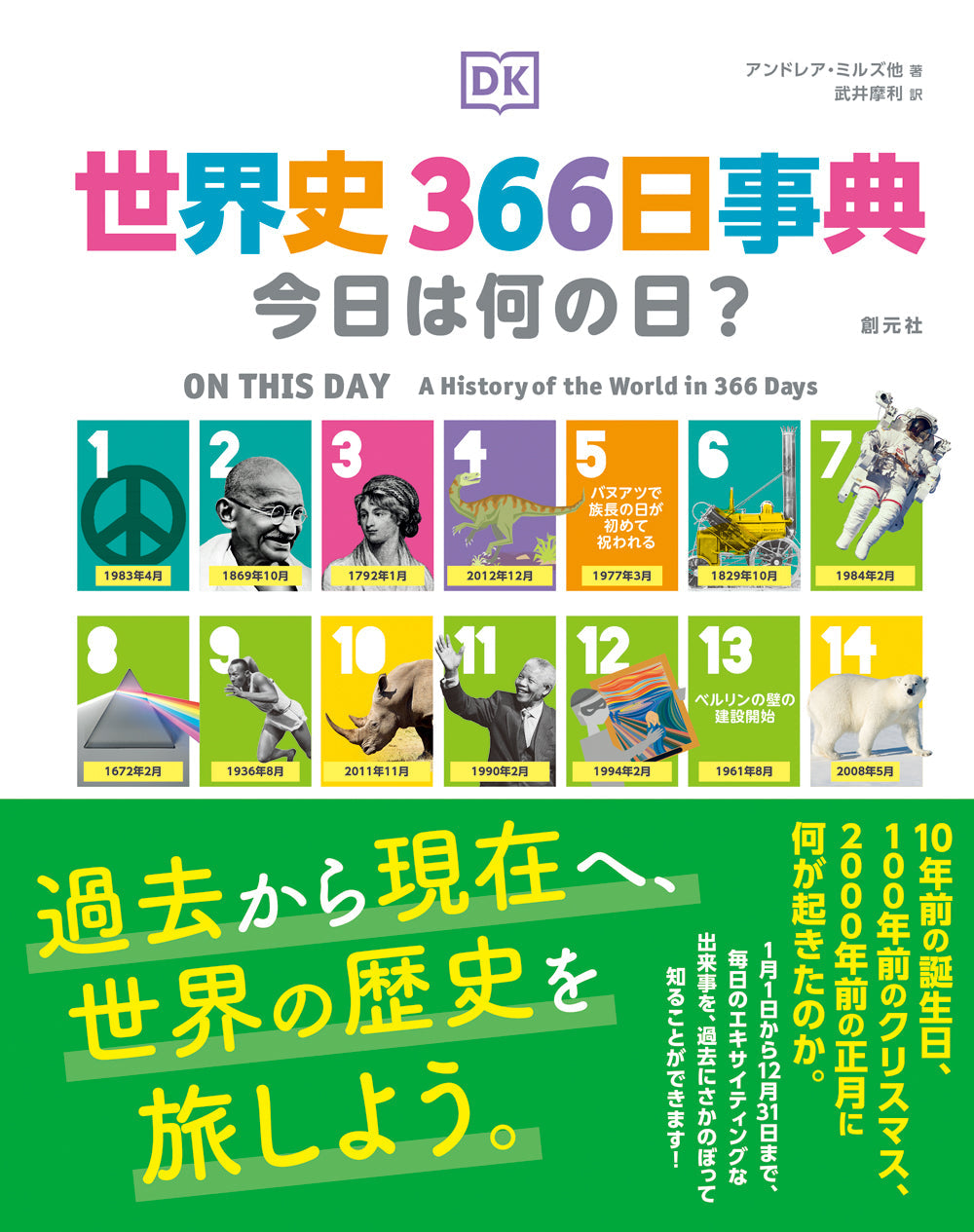 1年の366日のその日に、世界で何が起きていたのか。古代戦争、IT、宇宙旅行やいま注目の分野まで、「その日」でつづる世界の歴史。学校の授業や職場での日々の話題にも生かせ、中学生から大人まで楽しめる本。