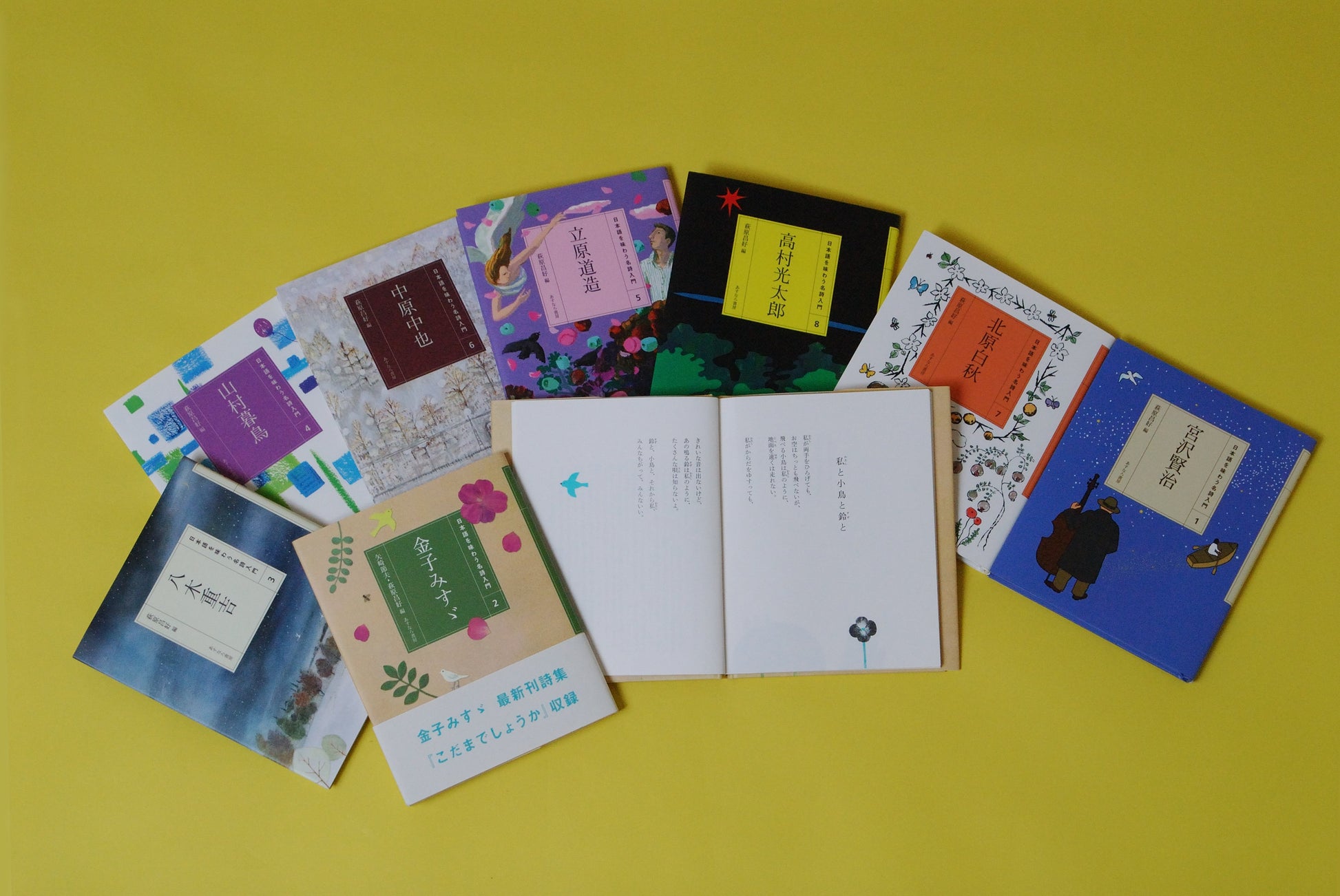 小さきものをあたたかく見つめる金子みすゞ、今なお歌いつがれる多くの童謡を残し、詩、短歌、童謡と幅広い分野で活躍した北原白秋、「真の芸術家」として生きぬこうとした高村光太郎など、8人の詩の世界を堪能してください。